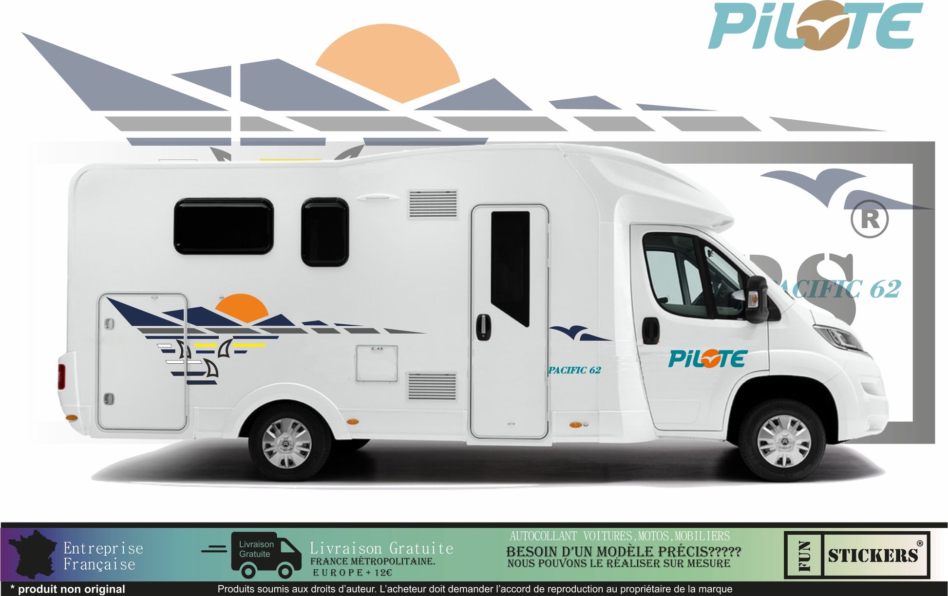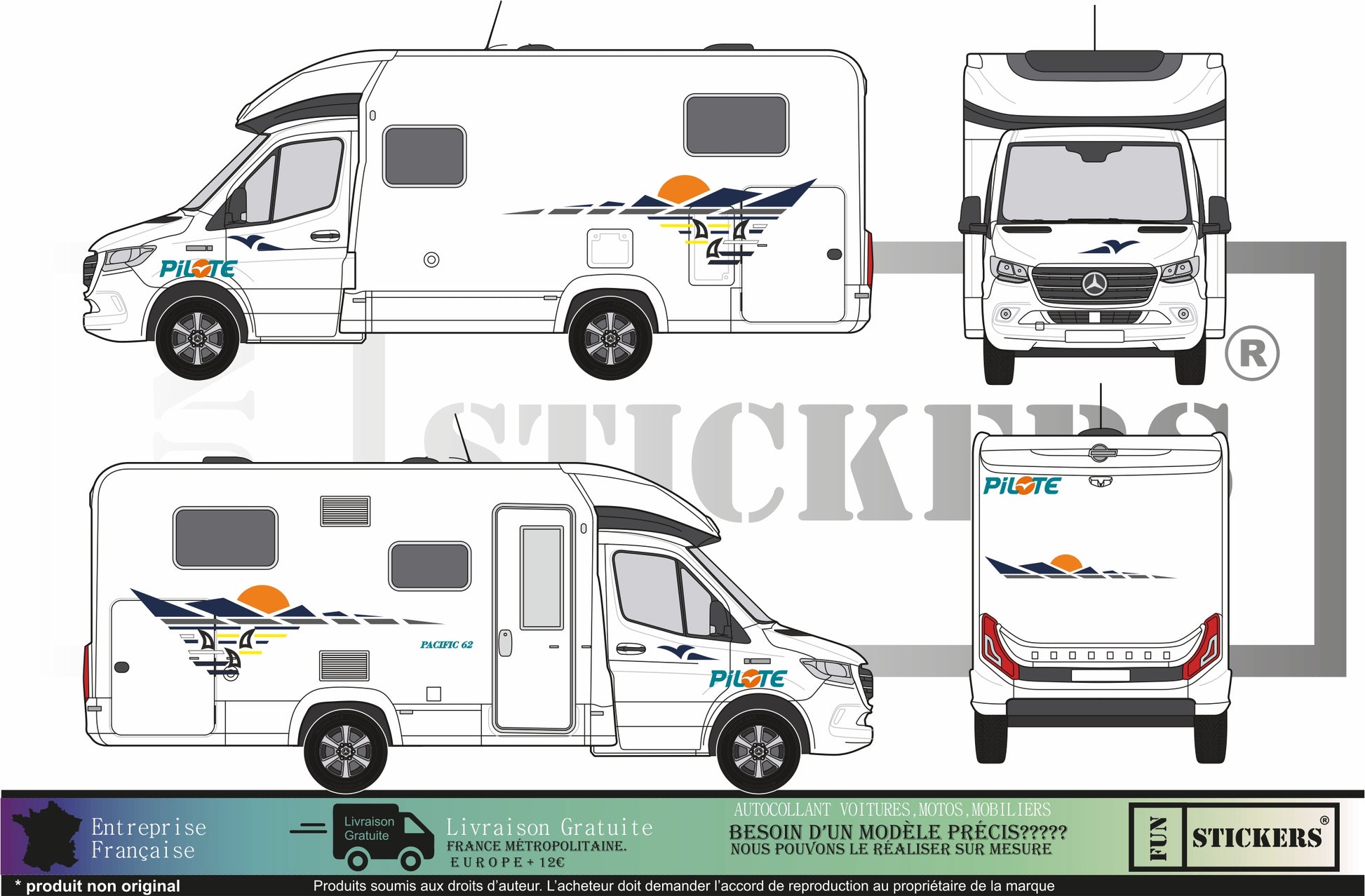 Sticker kit décoration intégrale pilote Pacific 62 – Compatible toutes marques camping-car