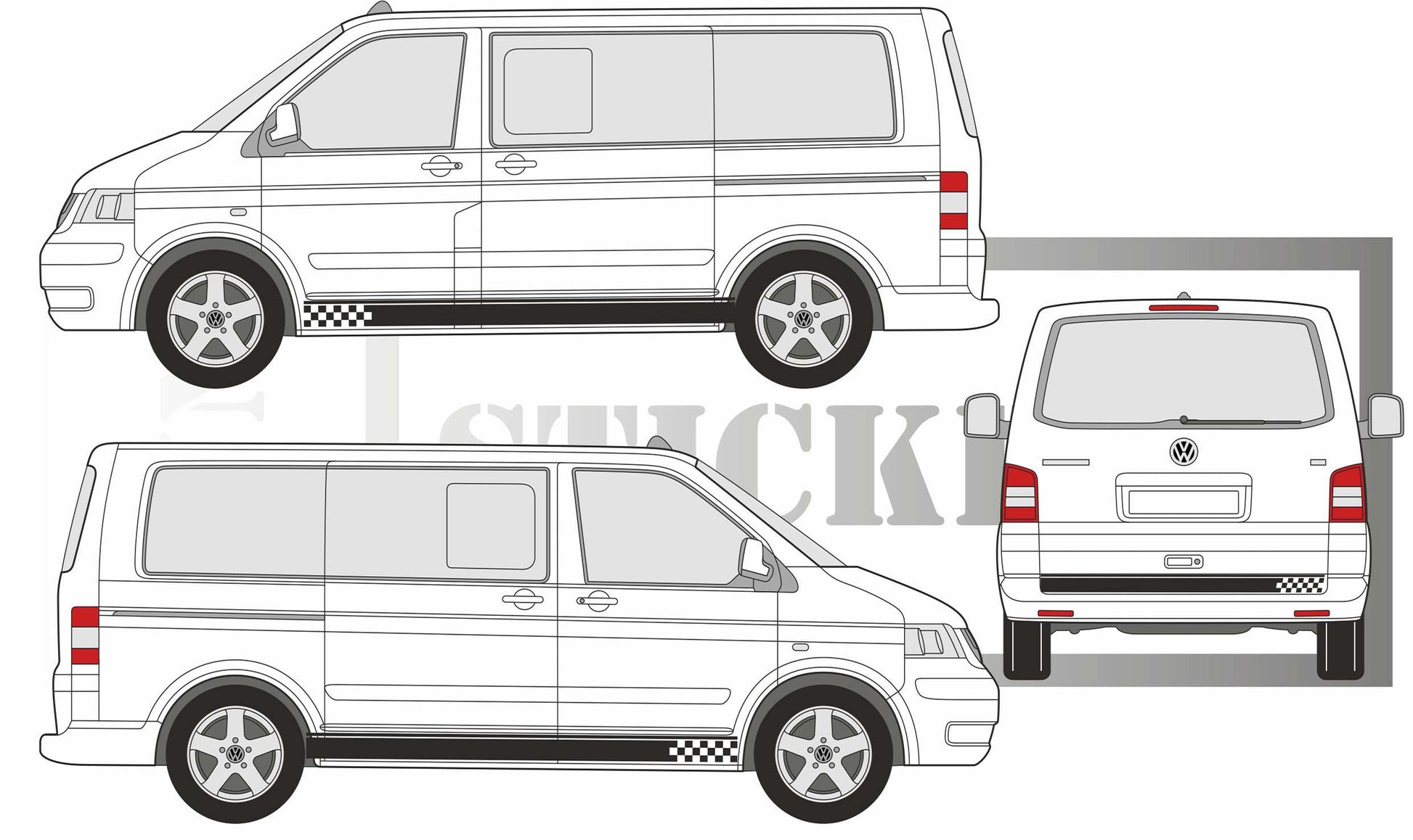 stickers autocollants pour wolkswagen transporter van - kit décoration bas de caisse