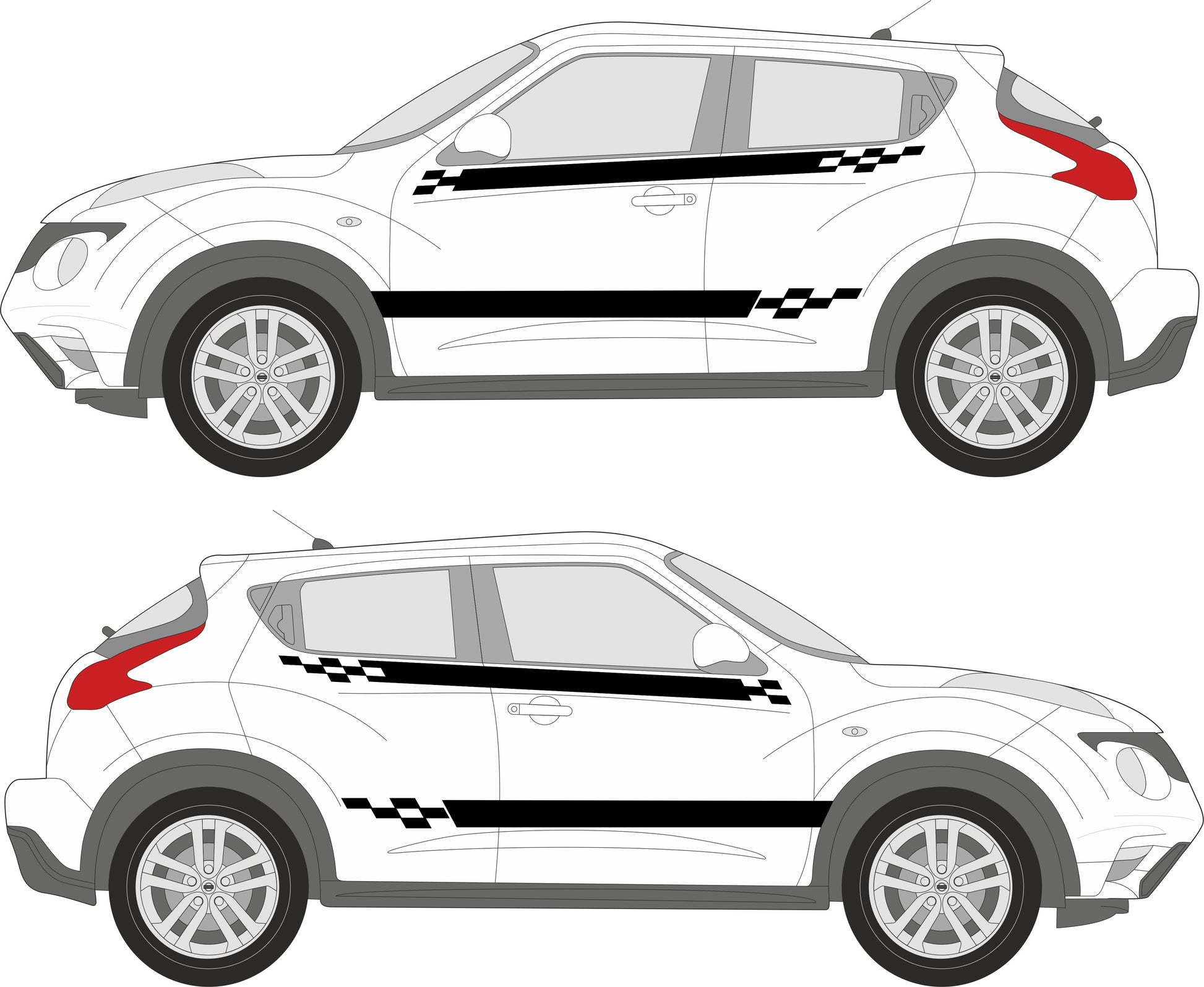 stickers autocollants bandes latérales damiers pour Nissan Juke - Kit décoration adhésif
